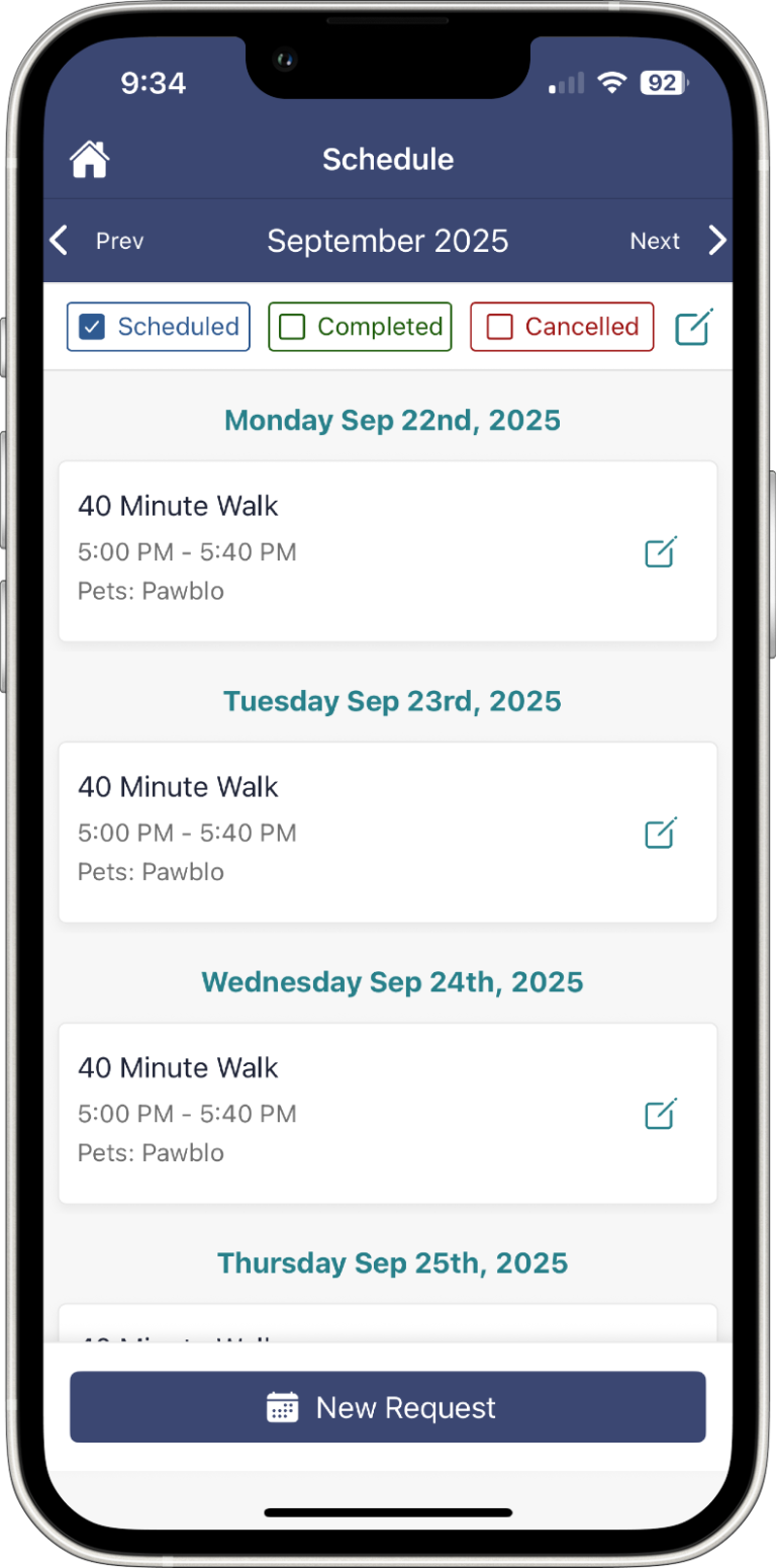 Book walks or visits in seconds. Manage your schedule directly in the app without back-and-forth texts.