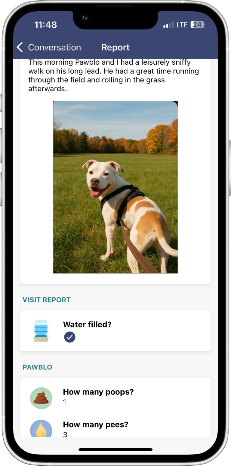 After every visit, you’ll get a detailed report card with photos, notes, and potty updates to keep you in the loop!